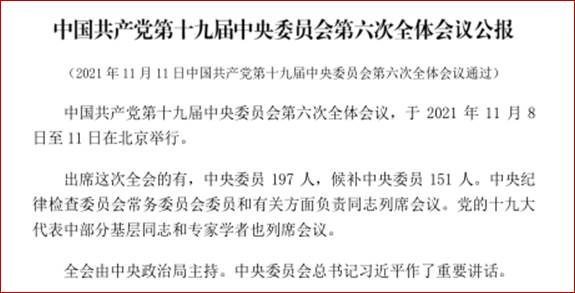2021年11月8日至11日,中国共产党第十九届中央委员会第六次全体会议在北京举行。小黄书