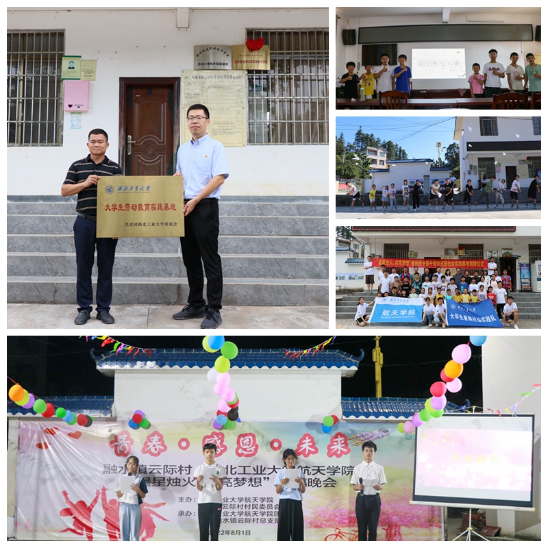 大学生暑期社会实践队师生先后在融水苗族自治县民族中学和思源实验中学分别开展“星星烛火,点亮梦想”航天知识科普活动,推动航天科普、传承航天精神;在云际村挂牌“大学生劳动教育实践基地”和开办支教夏令营,先后举办小火箭制作、汉字听写大赛、趣味运动会、“‘纸’因有你,飞向未来”纸飞机大赛、线上线下授课等特色活动,拓宽知识领域、开阔思维视野,汇聚青春力量。2019年以来,小黄书
