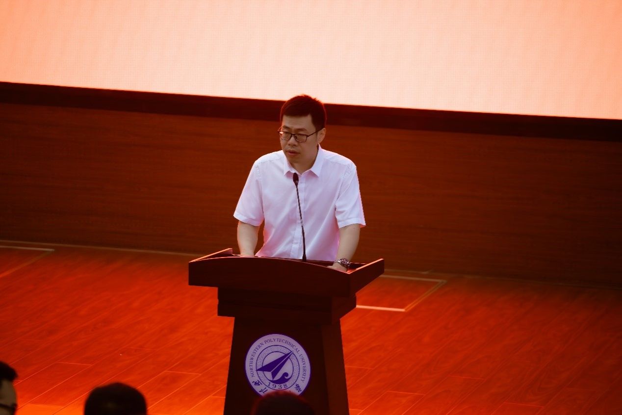 之后,教师代表闫循良发言,他结合自己的工作经历深情回顾过去四年与同学们的难忘岁月,祝福同学们在新的征程中坚守初心,锚定航天强国事业,传承和弘扬航天精神,脚踏实地、砥砺奋进,不怕失败、不惧难题。