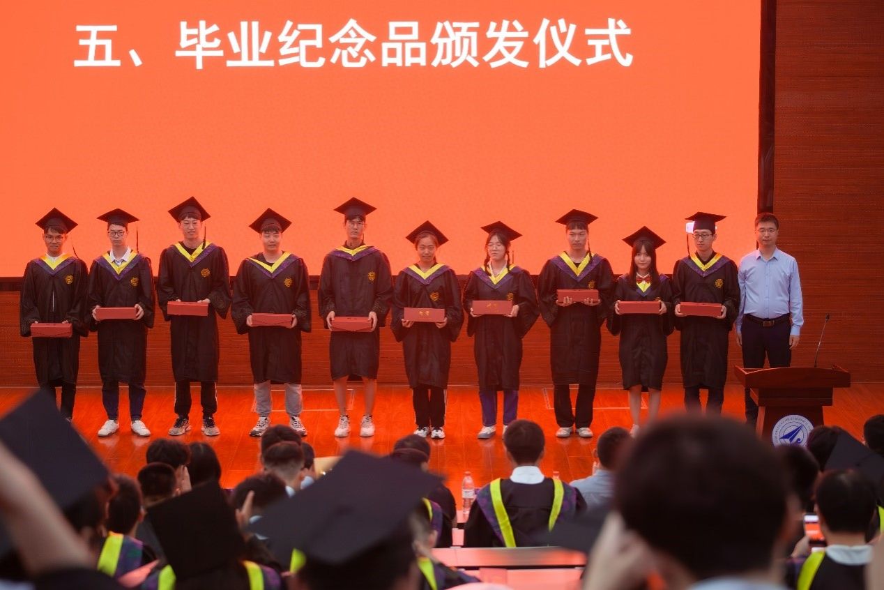岳晓奎院长、黄越书记为优秀毕业生颁发纪念品,希望他们不负韶华,在奋发有为中践行初心使命。