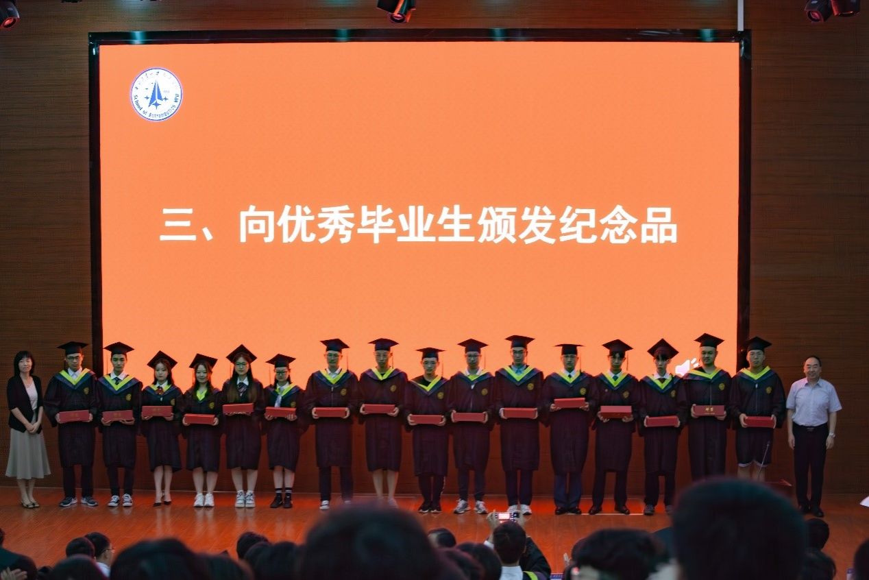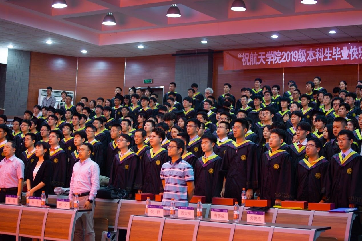 校歌》合唱声中结束。悠悠学子离别心,依依母校感恩情。神圣而庄严的毕业典礼,见证了同学们大学时代的结束,代表了青春岁月的收获和成长。毕业不是结束,而是一段新征程的开始,相信每一位航天学子将带着留恋和不舍,带着梦想和责任,更带着母校赋予的不懈精神和优秀家风,出征伟大的新时代。浩瀚宇宙,征途漫漫,问天九层,初心不改。