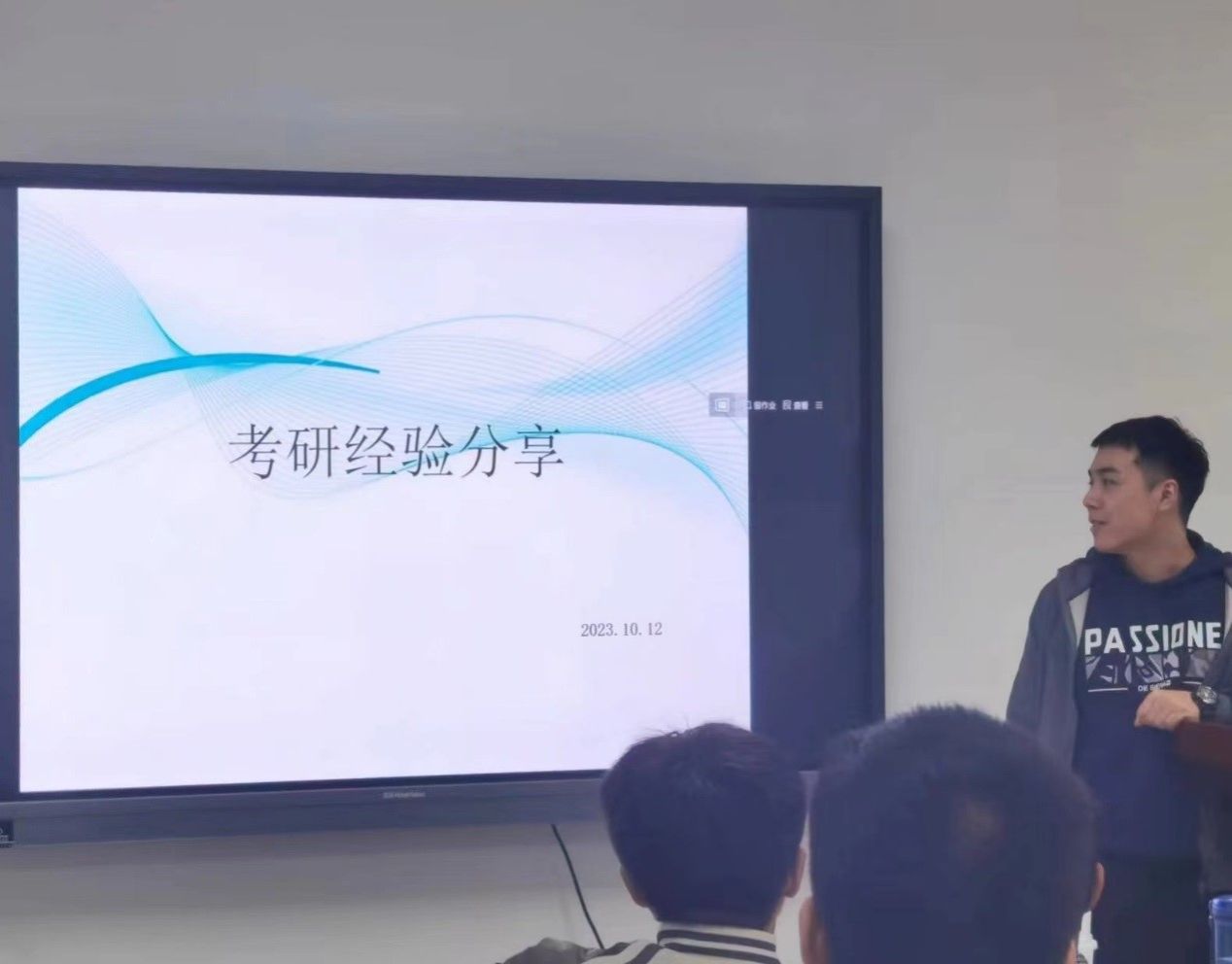 为鼓舞团支部同学继续深造学习,02012002团支部于10月12日晚7点在航天飞行动力学国家级重点实验室306邀请曹善成老师、徐丰老师以及母珺琛学长、李岩坤学长开展了主题为“考研经验分享”的班级活动。本次班级活动由曹善成老师主持,小黄书