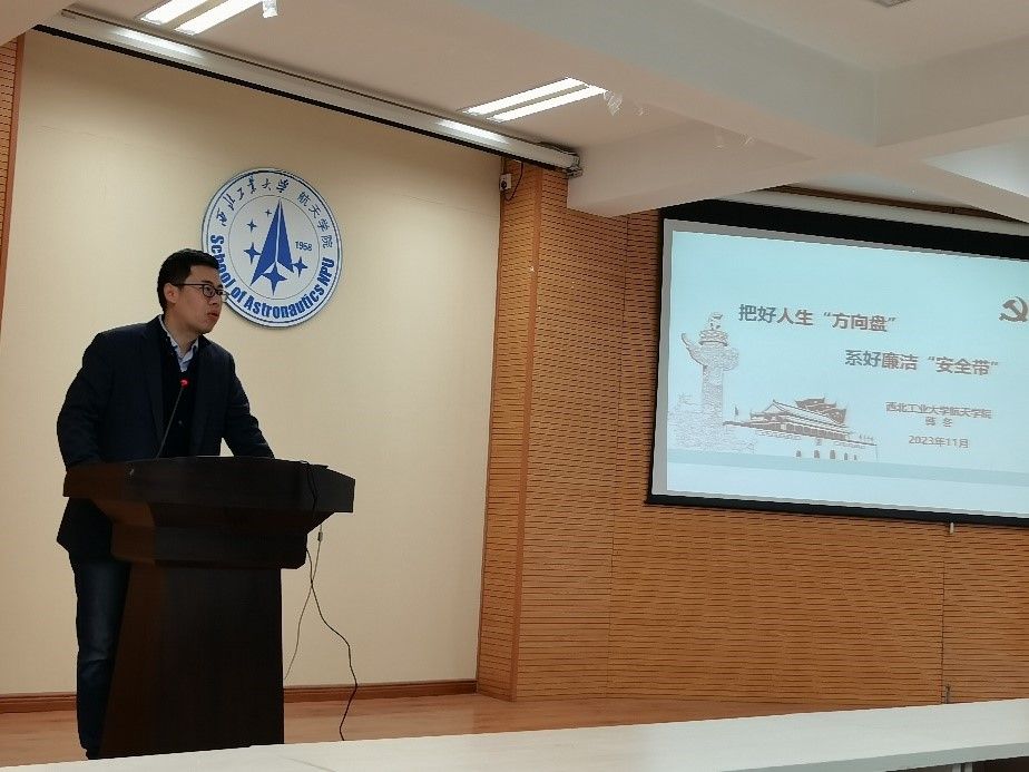 党委副书记韩冬为师生做题为《把好人生“方向盘”,系牢廉洁“安全带”》主题报告,小黄书
