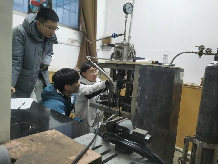 在两位老师的精心组织下,同学们先后进行了热电偶丝焊接、发动机装配、点火系统使用等3项实践能力训练,完成了推进剂基础燃速测量、推进剂燃温测试、发动机动态燃速测试及侵蚀燃烧性能测试等4项实验。通过此次教学实验,同学们熟悉了固体发动机的实验流程、测试方法与测试系统使用方法,并现场了解了工程研制单位的试车台、点火系统、测控系统和安全管理规范等内容。同学们自己动手操作进行了2个固体发动机的点火试车,并对测试数据进行了深入分析。