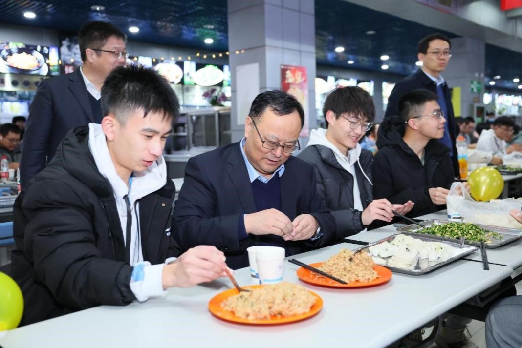 党委书记黄越、党委副书记韩冬、副院长宁昕及各年级辅导员也为同学们送上新年祝福,和同学们一边包饺子,一边交流,欢声笑语中,共同感受着新年的喜悦。