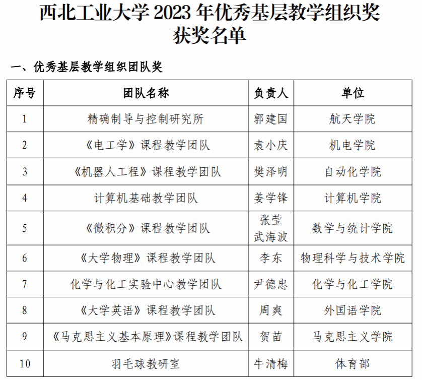 精确制导与控制研究所以微小卫星为载体,以总体、动力学与控制、创新设计和研制为主线,构建了系统性和实践性的课程体系,开设了涵盖卫星系统工程、航天器控制原理、现代控制理论基础、导引系统原理和大学生微小卫星综合设计与研制等14门本科课程,其中国家级一流本科课程4门,建成“微小卫星控制与工程”国家级首批课程(群)虚拟教研室,获全国高校黄大年式教师团队、国家级重点领域科技创新团队和工信部研究型教学创新团队等荣誉称号。先后出版教材11部,获批教育部航空航天类战略新兴领域教材1部,获陕西省优秀本科教材一等奖和二等奖各1部,获国家级教学成果二等奖2项,省部级3项。