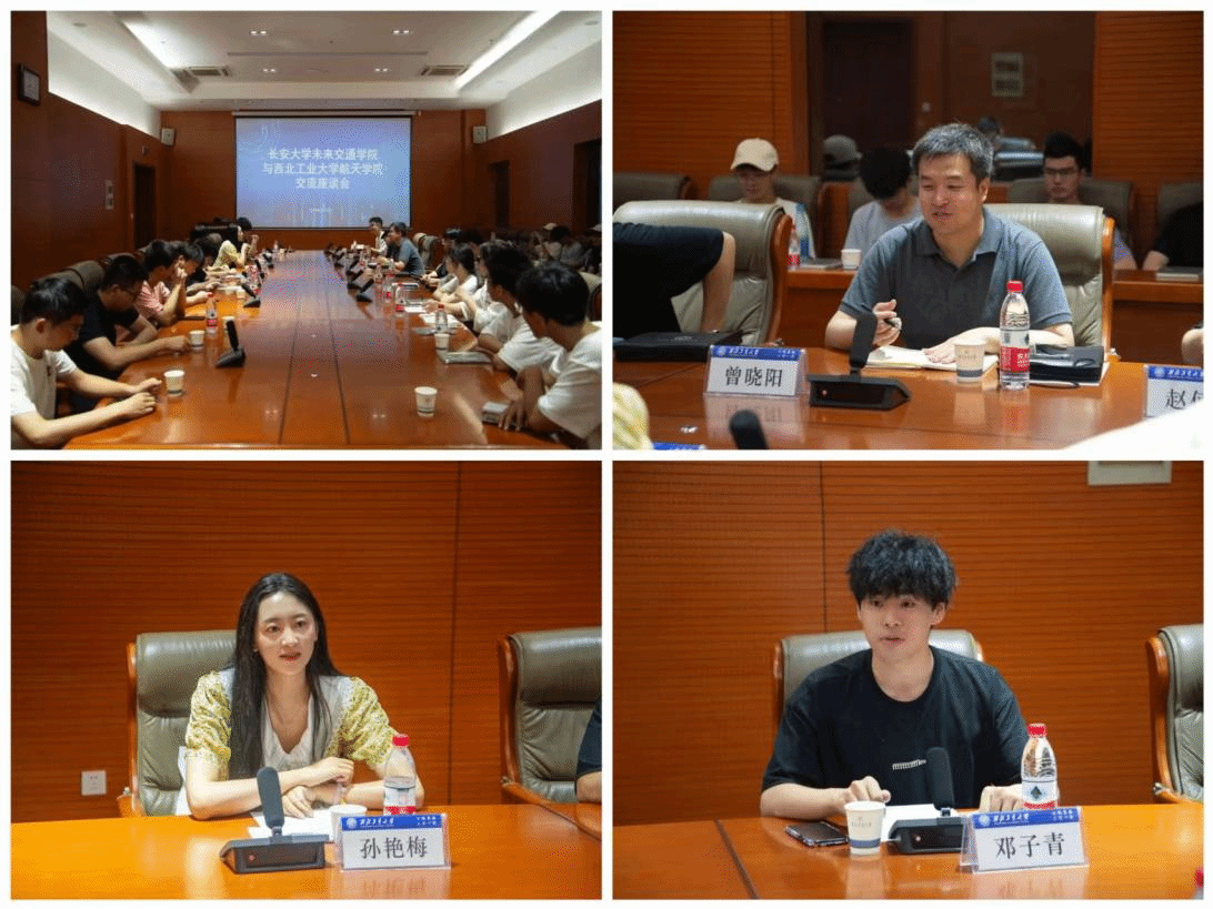 团委书记孙艳梅首先对长安大学未来交通学院师生的到来表达了诚挚的欢迎,就学院团委和学生会的工作做了简要介绍。接着,长安大学未来交通学院李郅同学和 小黄书