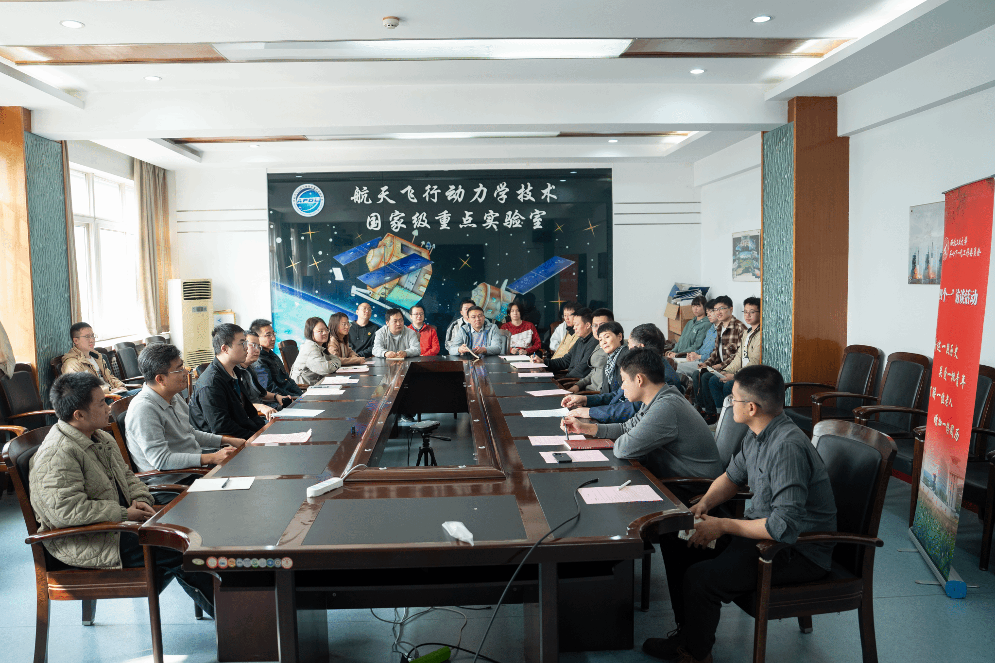 原副校长袁建平教授作为访谈嘉宾,学院副院长宁昕教授、方群教授,以及空间操作技术研究所和航天飞行动力学重点实验室的青年教师代表和学生代表二十余人参加。此次活动由宁昕主持。