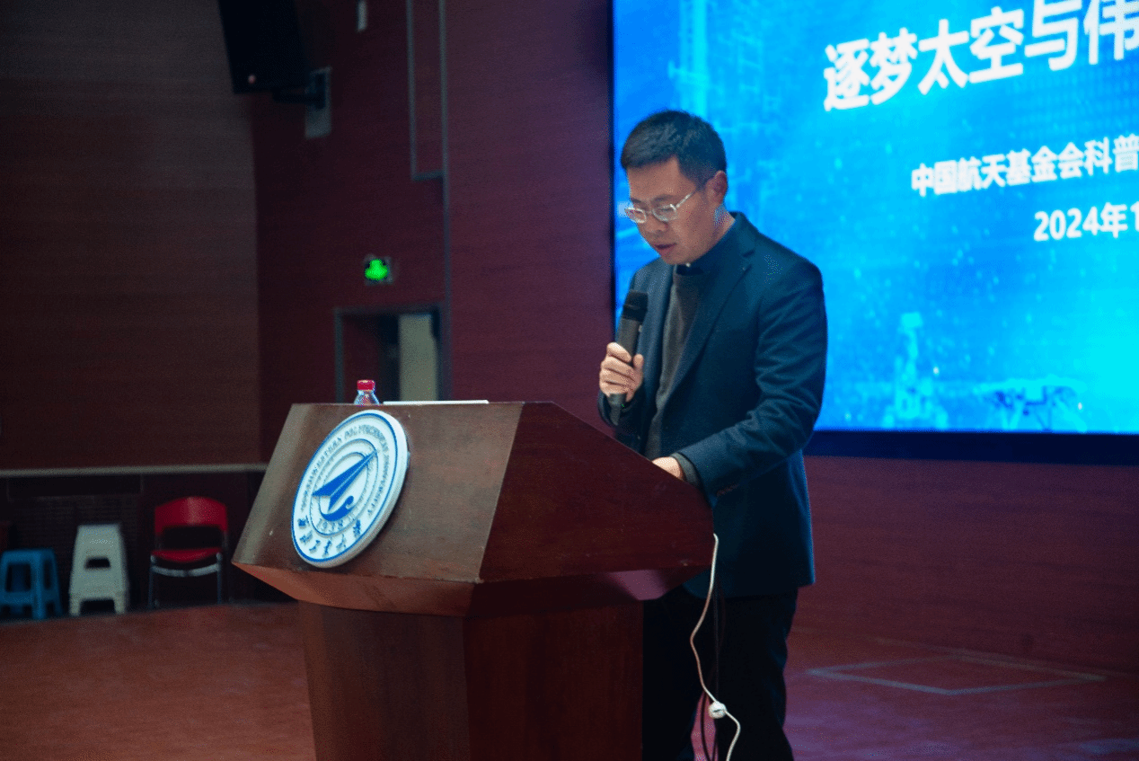 孙保卫声情并茂讲述着我国航天事业取得的瞩目成就,诠释了振奋人心的航天精神密码,分享了航天辉煌背后钱学森、孙家栋、林俊德等老一辈科学家和谢兆胜、吴杰、邓清明等无名英雄的感人故事,让同学们无比动容。他勉励同学们不仅要有仰望星空的勇气,也要有脚踏实地的定力和含泪奔跑的毅力。他希望同学们做一个积极向上认真学习的人、做一个目标明确知难而上的人、做一个品德高尚有家国情怀的人。