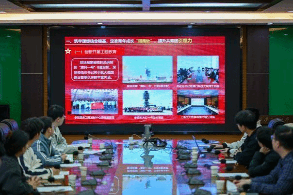 学生兼职团委副书记刘超越同学介绍了学院团委的工作内容以及近期工作成果。随后学生会主席团成员张云飞同学介绍了学生会的组织架构以及在权益维护、校园文化活动举办等方面的成果,展现出一套严谨且富有活力的组织体系。紧接着,西安交通大学航天航空学院学工会主席常峻铭同学分享了本校小黄书