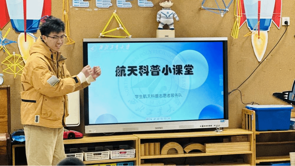 学生航天科普志愿者服务队走近西工大幼儿园,开展生动有趣的航天科普活动,为西工大幼儿园小朋友们点燃“航天梦”。