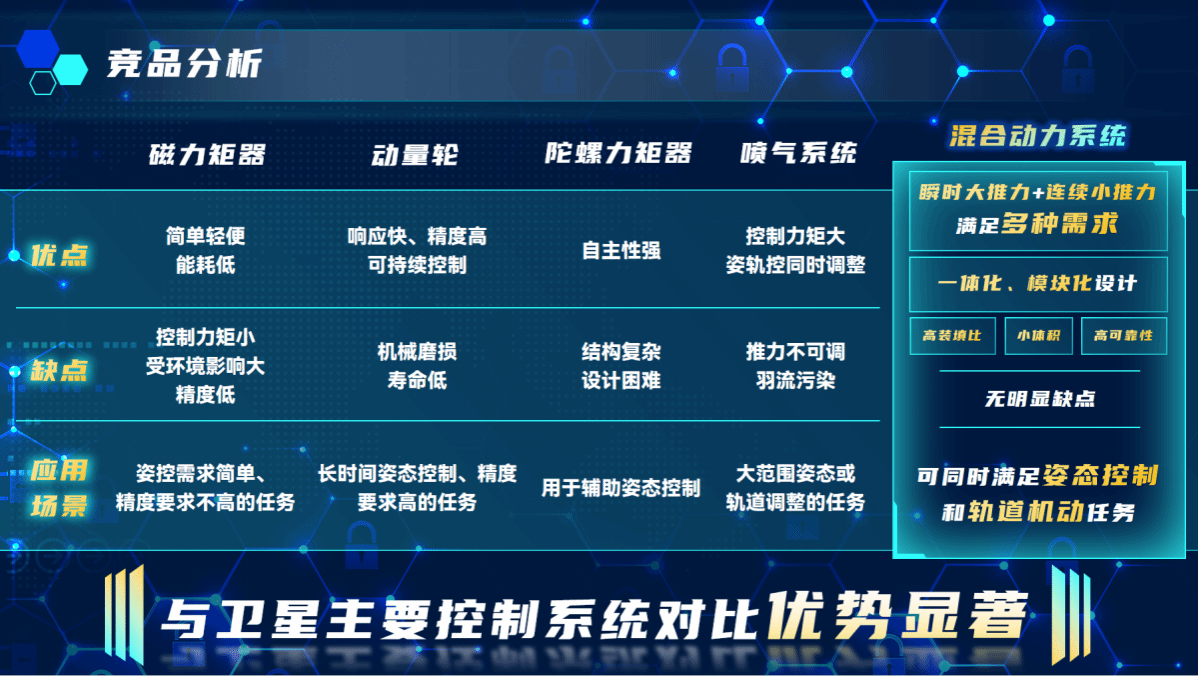 “飞天巡洋 动力先行”团队构建了一套微纳卫星快速机动混合动力系统,通过将固体火箭发动机和液化气推进系统相结合,实现了优势互补,具有高比冲、小体积、推力可调、高可靠性等优势。
