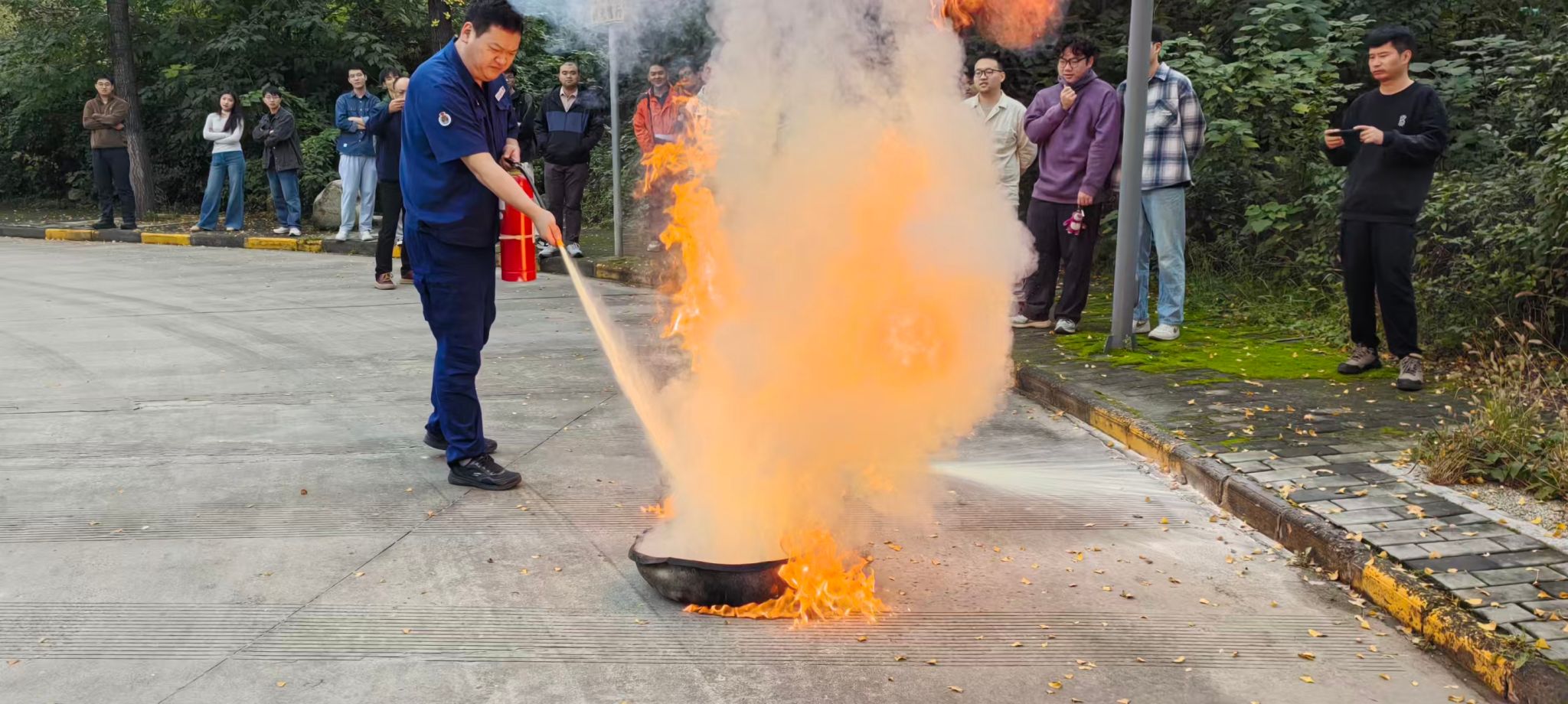 许老师为在场师生进行消防知识讲解和消防器材演示。举例介绍学校往期发生在实验室和宿舍的消防安全事故,强调宿舍里要注意高功率电器的规范使用、实验室内要注意危化品的存放要求。叮嘱师生在遇到火情时,要及时切断电源,并优先保证自身人身安全。