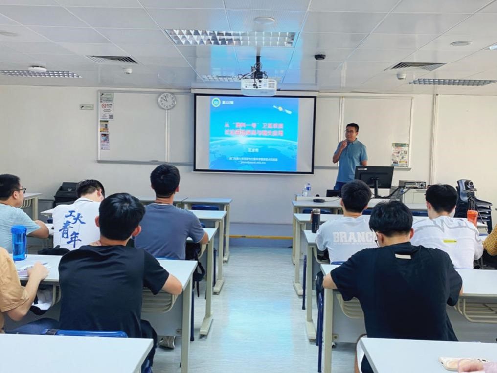 13日,学员们在澳科大接受全天授课。上午,区家明教授以“从‘澳科一号’卫星项目讨论磁场探测与相关应用”为主题,向同学们详细介绍了“澳门科学一号”卫星项目,进而介绍了对地球到整个太阳系进行磁场探测和研究的重要意义。