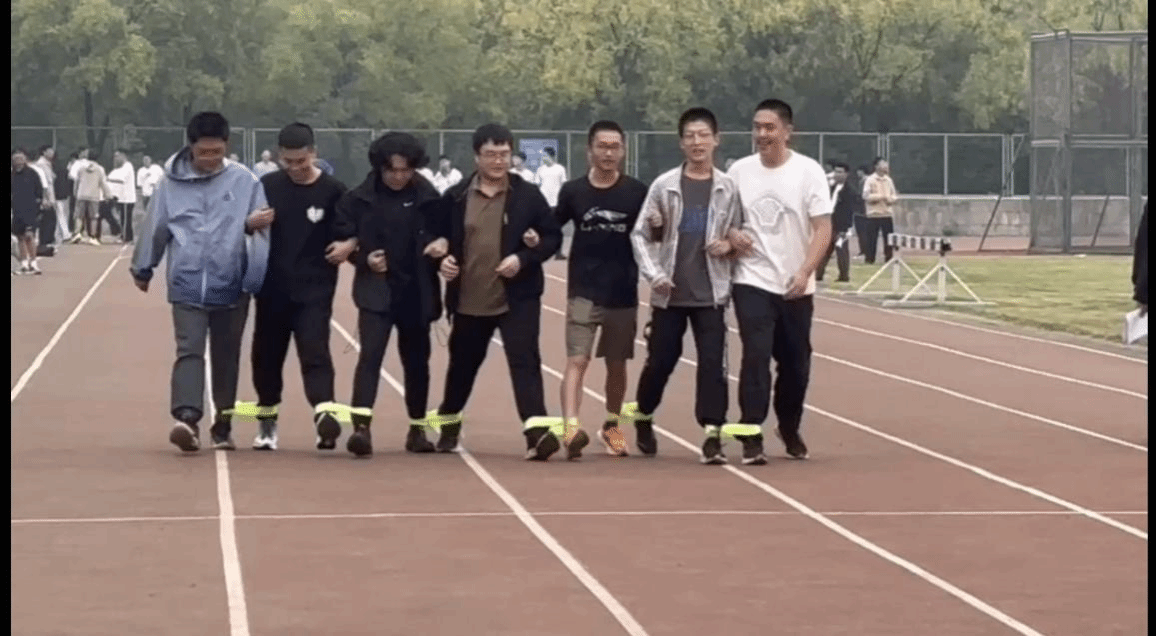七人八足:同学们手挽着手,稳步向前,喊出整齐划一的口号,团结一心地奔向终点。