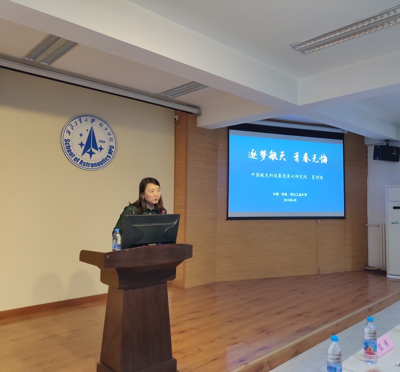 会议伊始,王莉老师介绍了分享会主讲人夏博隆老师以及航天七院的各位领导嘉宾。在同学们热烈的掌声中,夏博隆以“逐梦航天,青春无悔”为主题为同学们作报告。他介绍了航天七院(四川航天技术研究院)对中国航天事业和航天人才培养的卓越贡献,随后从三线建设、优秀航天人的故事、我国航天工业的发展历程等方面向同学们展示了航天七院的发展历史,并向有意投身航天事业的学生们介绍了七院下属各研究所的主要项目、产品、人才发展情况和工作环境等。