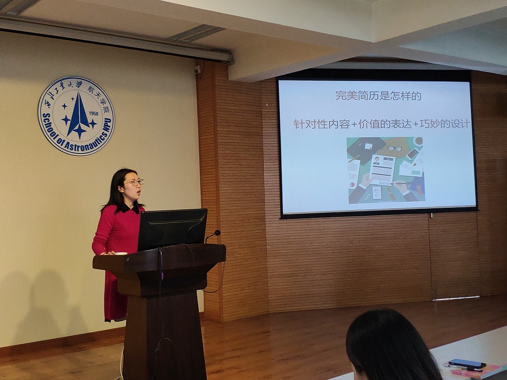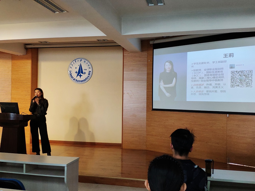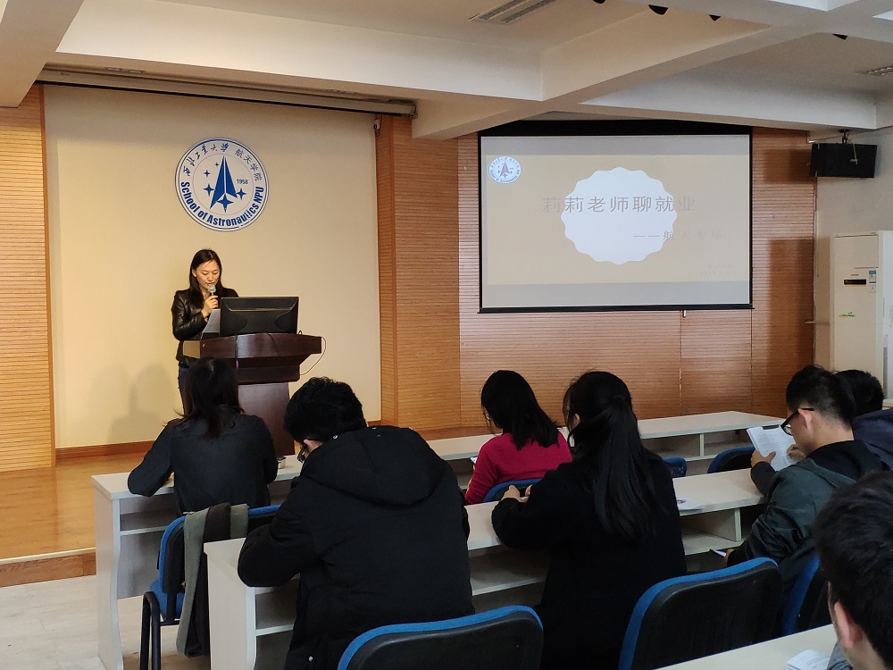 在四号楼六楼多功能厅举办了“莉莉老师聊就业之航天专场”分享会,邀请学校党委学生工作部副部长、学生处副处长王莉和就业创业指导服务中心朱莉老师主讲。小黄书