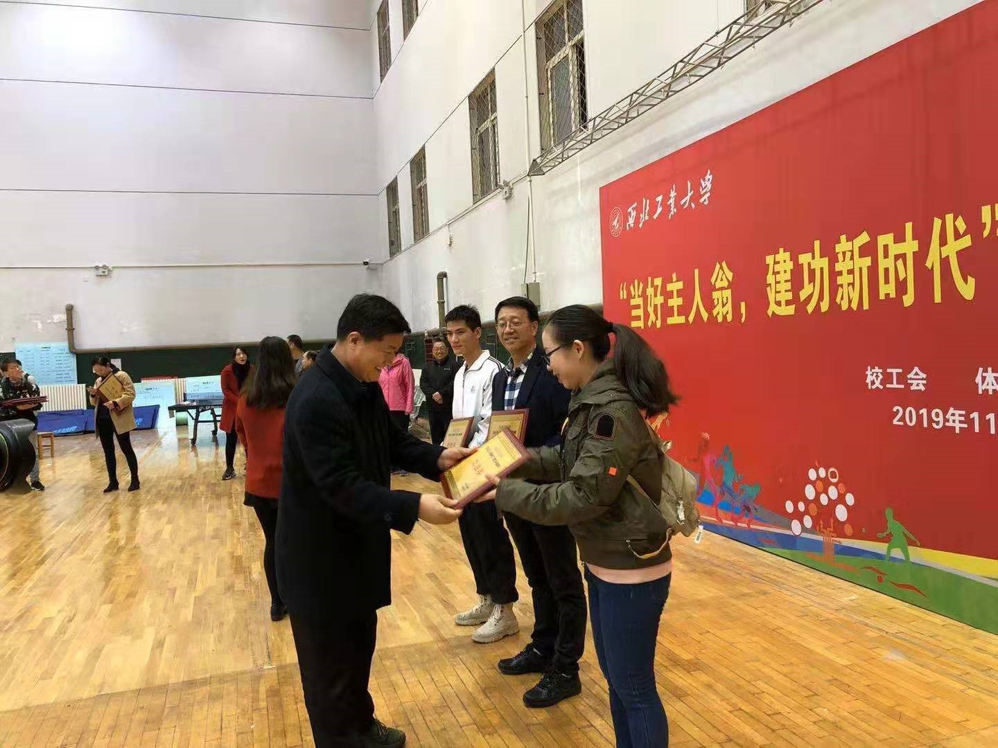 在阵阵喝彩声中,可亲可敬的教职工们个个精神饱满、兴致勃勃的走向了颁奖台。无论是第几名,每位老师都洋溢着开心的笑容,充分发扬了“友谊第一,比赛第二”的精神,也同时弘扬了“团结合作,勇于创新,拼搏进取,为国争光”的国球精神,展示了我校教职工不仅在教育教学工作中上追求进步,追求真理的严谨态度,在体育上更是顽强拼搏,奋勇争先的新面貌新风采。