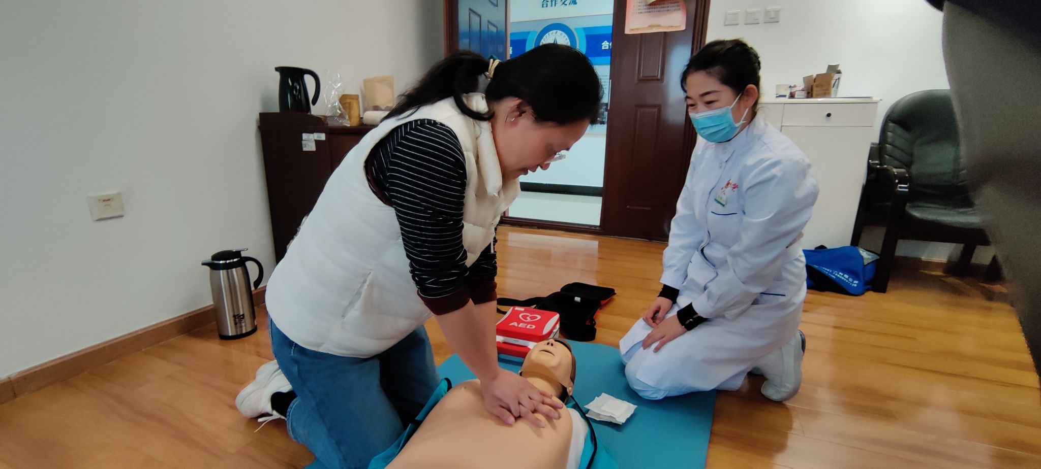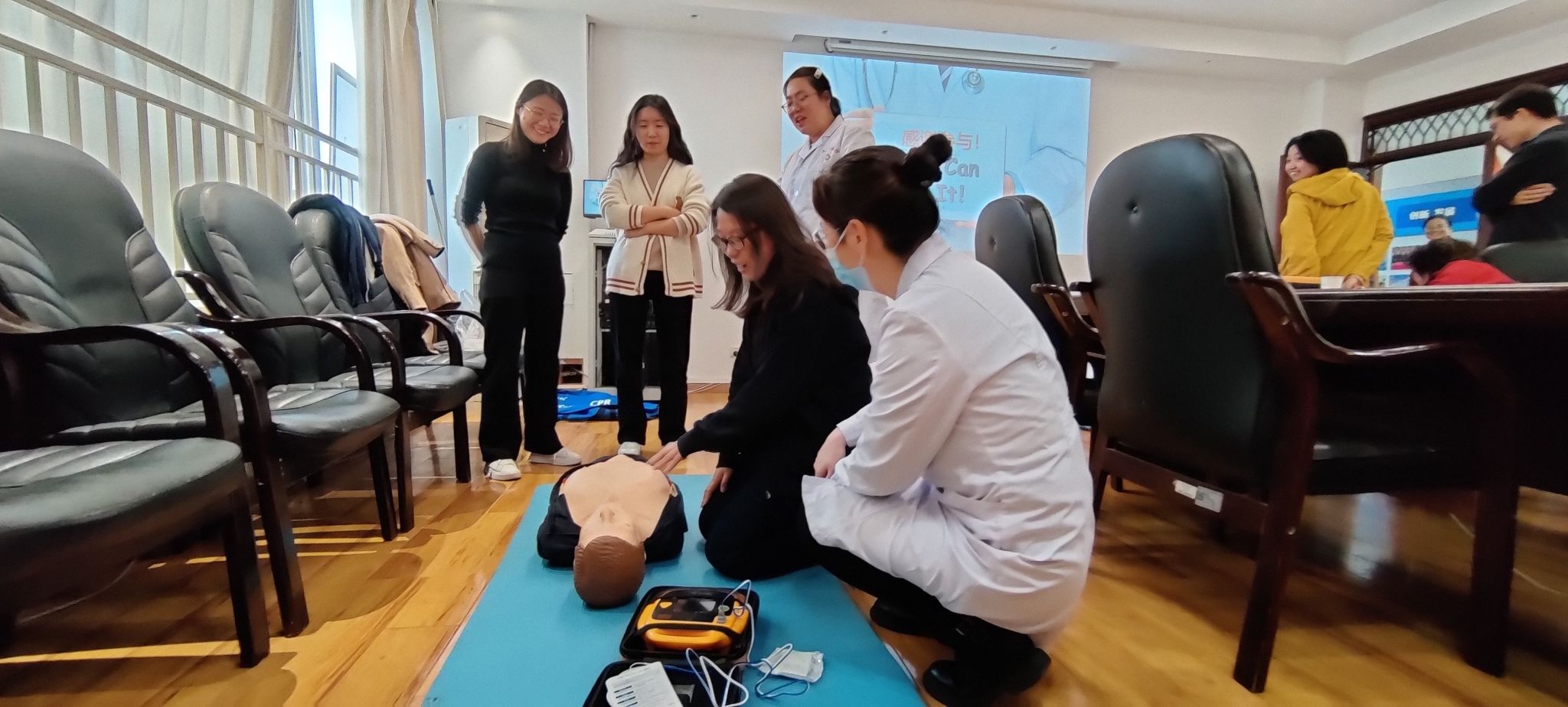 分工会特邀请校医院汤燕医生、梁乐乐医生、聂佩护士于11月6日下午在学院4号楼413会议室举办了一场心肺复苏及海姆立克急救法培训。此次培训受到了广大教职工的热烈响应和积极参与。培训由学院工会主席校金友主持。