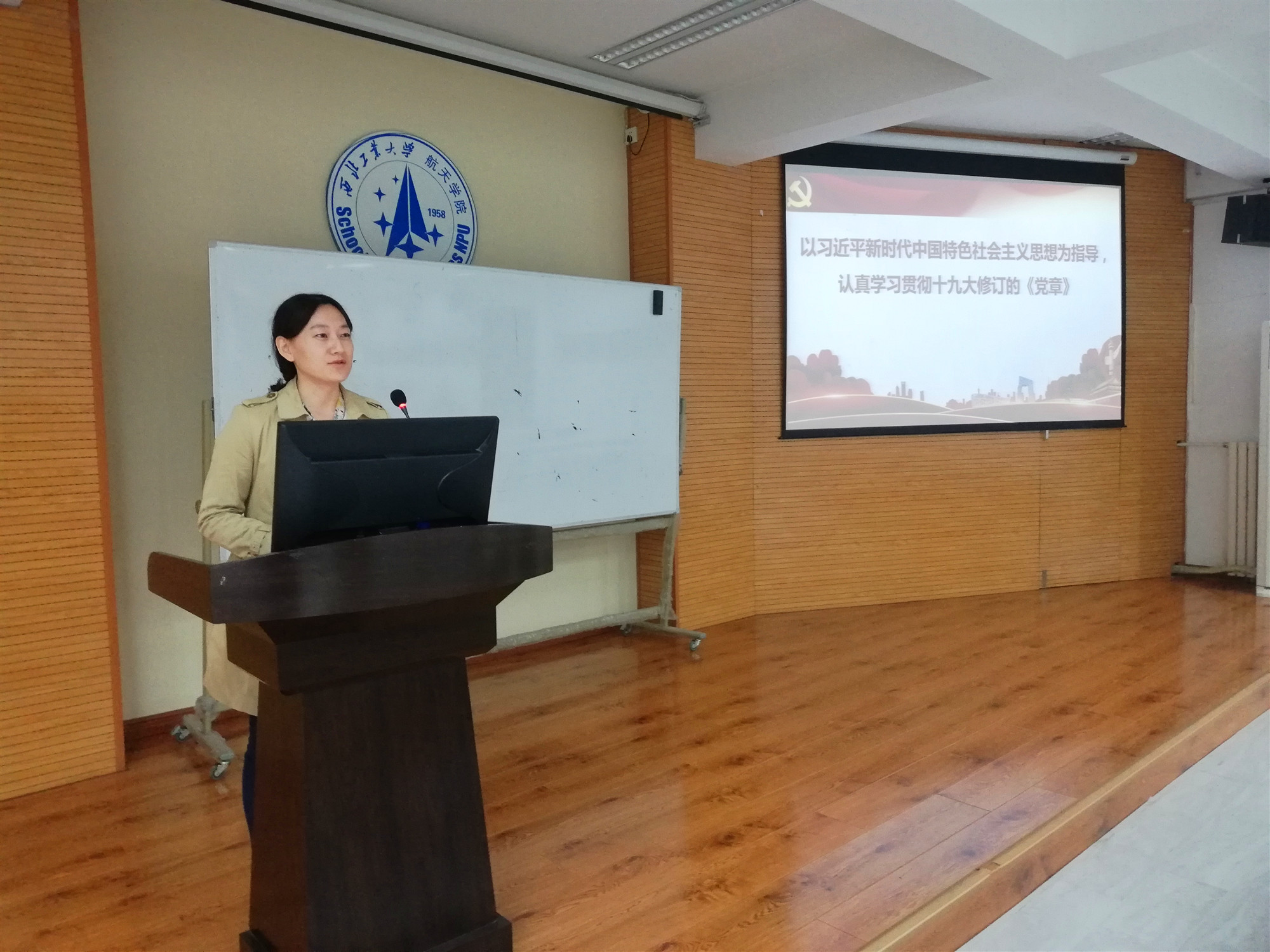 党委副书记常威威为入党积极分子讲授“以习近平新时代中国特色社会主义思想为指导,认真学习贯彻党的十九大修订的《党章》”专题党课。小黄书