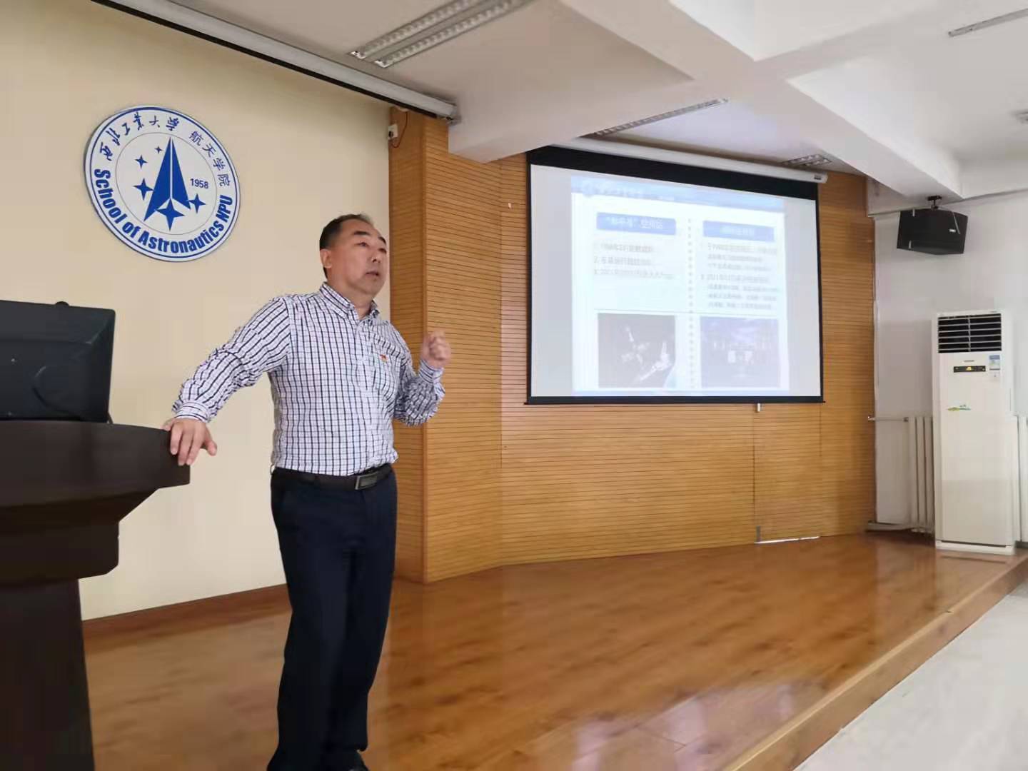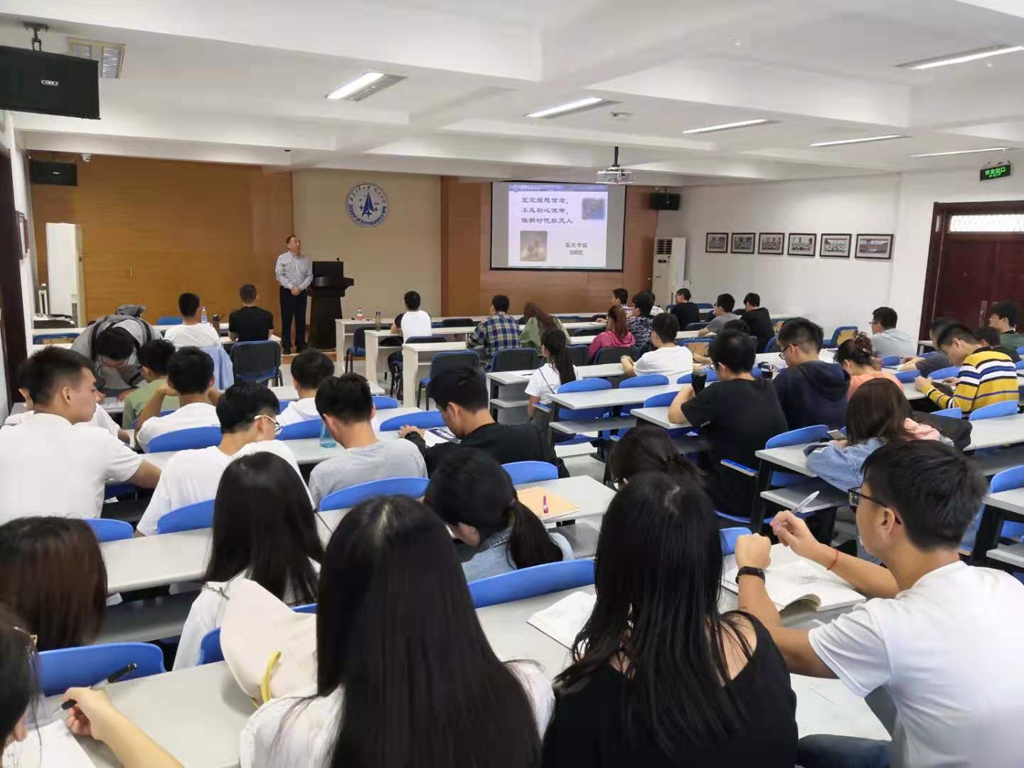 岳晓奎以航天技术发展史开篇,层层深入,为新生党员讲授了一堂生动的党课。他细致讲述了从古代人类对于星月的向往,到后来各国不断发展技术去探索太空的进程。谈到我国在航天事业上的艰苦奋斗和辉煌成就,他动情讲述了钱学森、陈士橹、郭永怀等老一辈航天人为国防建设孜孜不倦、锲而不舍,为祖国强大敢于担当、鞠躬尽瘁的感人事迹。他们用行动诠释了“自力更生、艰苦奋斗、大力协同、无私奉献、严谨务实、勇于攀登”的航天传统精神。