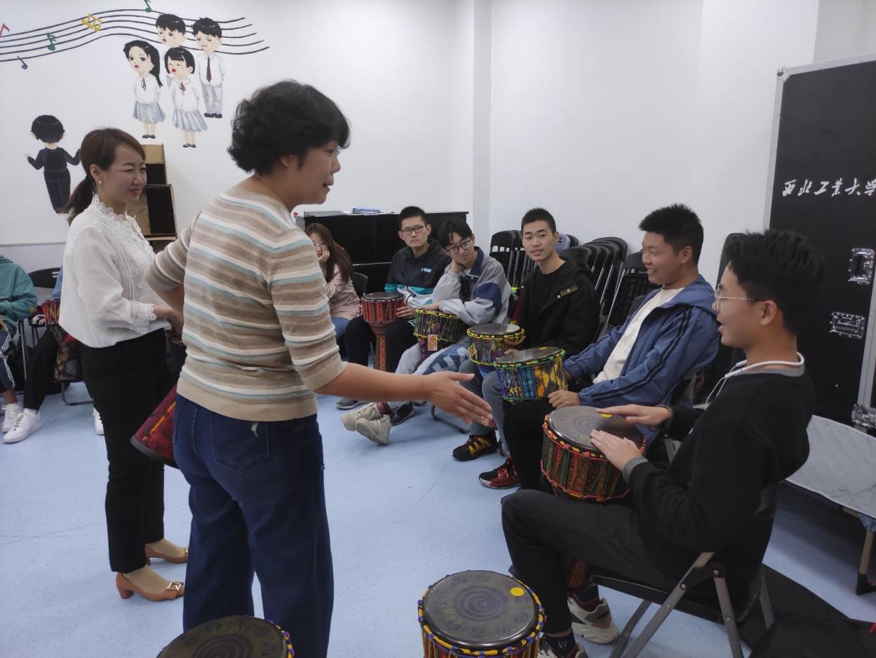 和材料学院在西配楼合唱排练室联合举办了鼓圈活动,本次活动邀请到了陕西省教育学会心理研究中心主任金焰现场指导,来自各学院五十余名同学围坐在一起,跃跃欲试,希望用充满节奏感的打击乐放松神经、缓和心情、探寻内心。