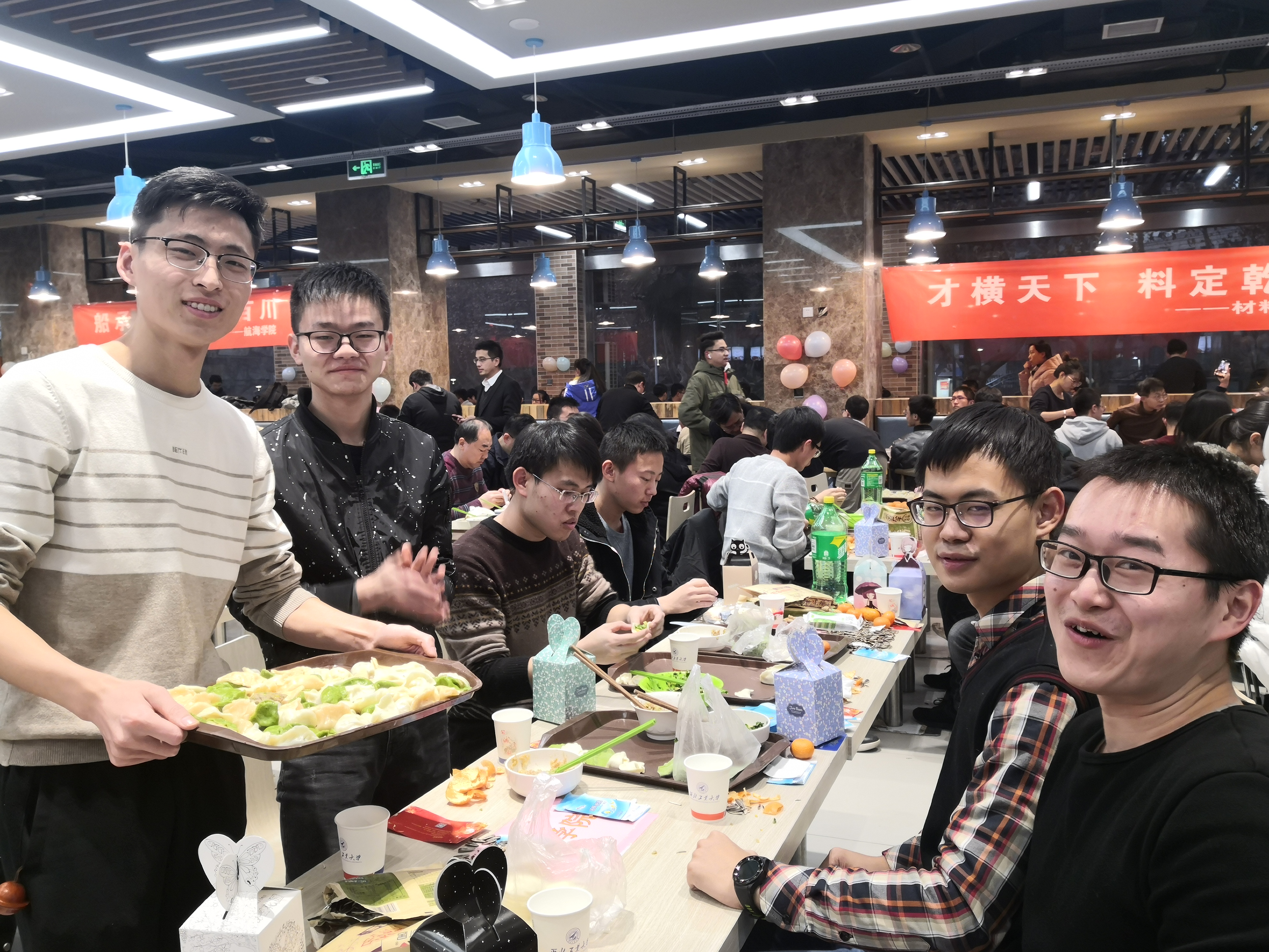 院长唐硕、党委副书记(主持工作)岳晓奎,副院长秦飞、张科,党委副书记常威威、王强以及班主任、辅导员、导师代表、学院办公室老师等来到现场,与同学们一起包饺子、唠家常,和同学们聊着这一年的学习与收获,表达对同学们新年的期许与祝愿。随着热气腾腾的饺子一盘接一盘地端上桌,同学们一齐举杯,共贺新年,现场气氛其乐融融。学校校领导与小黄书