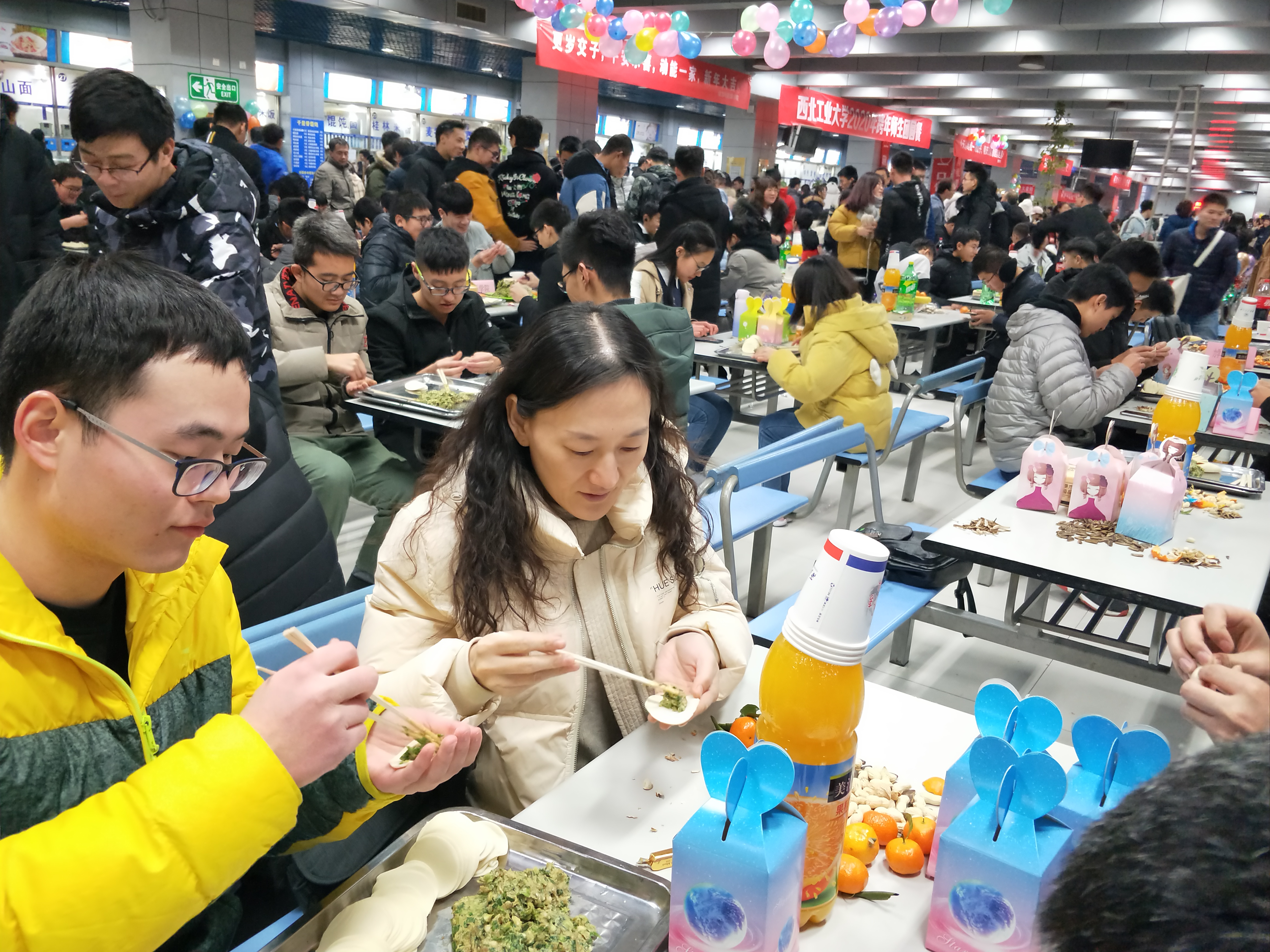 夜幕降临,万众瞩目的跨年活动拉开帷幕。跨年团圆餐在两校区学生餐厅拉开帷幕,小黄书