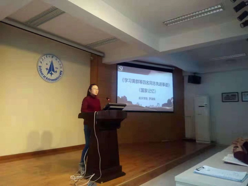 会上,罗淑娟传达了习近平总书记要求各基层党组织开展向黄群、宋月才、姜开斌同志为代表的抗灾抢险英雄群体和王继才同志学习的精神,学生党员骨干王昭、陈海飞、黄鹏飞同志分别带领大家学习时代楷模王继才、黄群、宋月才、姜开斌等同志先进事迹。王继才同志以海岛为家,把青春年华全部献给了祖国的海防事业;黄群同志面对台风和巨浪时,不惜以生命争取时间保护国家重点试验平台;宋月才同志不为国外高薪聘请所动,以舍小家顾大家保国家的情怀,为祖国建设贡献了毕生力量;姜开斌同志在退休之后仍以一名“老兵”的热忱和执着参与试验平台工作,手把手地带出一支高水平的专业队伍。这些时代英雄们在祖国需要他们的时候,都义无反顾的选择了投身祖国。他们用实际行动诠释了共产党员对党忠诚、恪尽职守、不怕牺牲的优秀品格,用宝贵生命践行了共产党员“随时准备为党和人民牺牲一切”的初心和誓言。