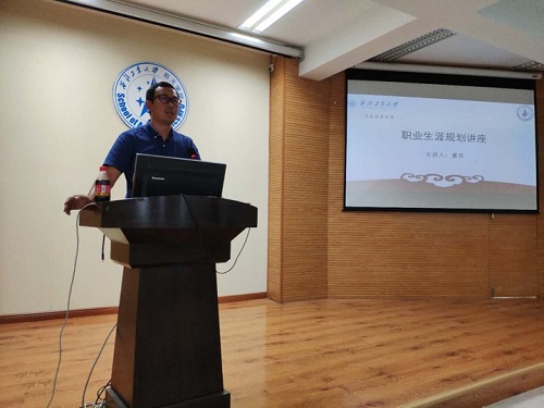 四号楼多功能厅举办了研究生职业生涯规划讲座。主讲人为计算机学院党委副书记、小黄书