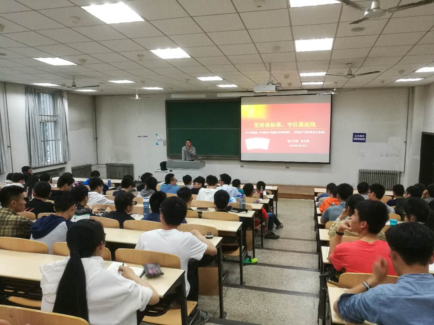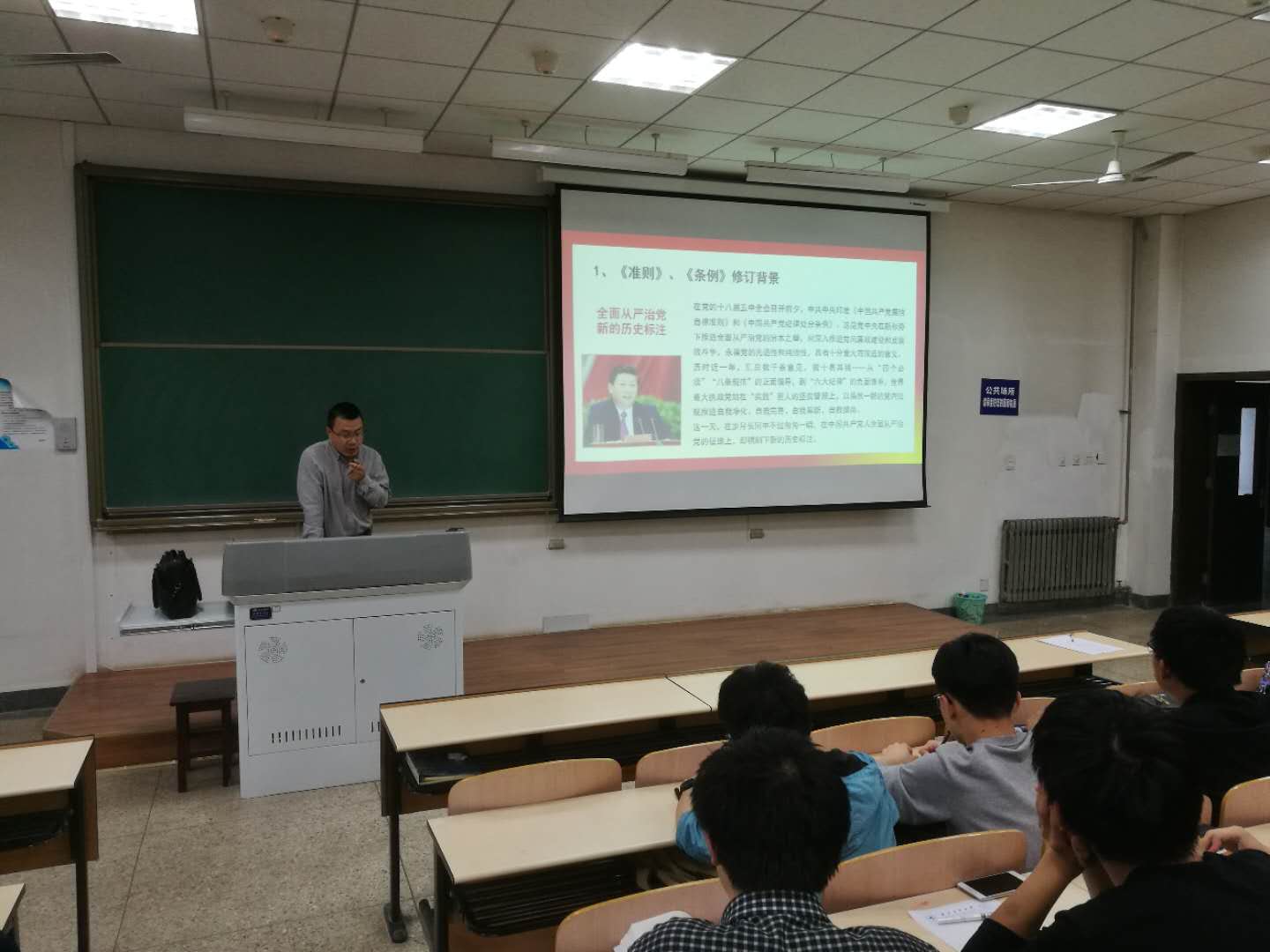 张书记从《准则》、《条例》修订的背景讲起,结合实际生活,对《准则》、《条例》的内容,新《准则》、《条例》的重要意义,及学习要求等方面进行了细致的讲解,教学内容充实丰富。他谈到,新准则和条例的颁布,标志着我们党的纪律越来越严格,对党员的标准越来越高。