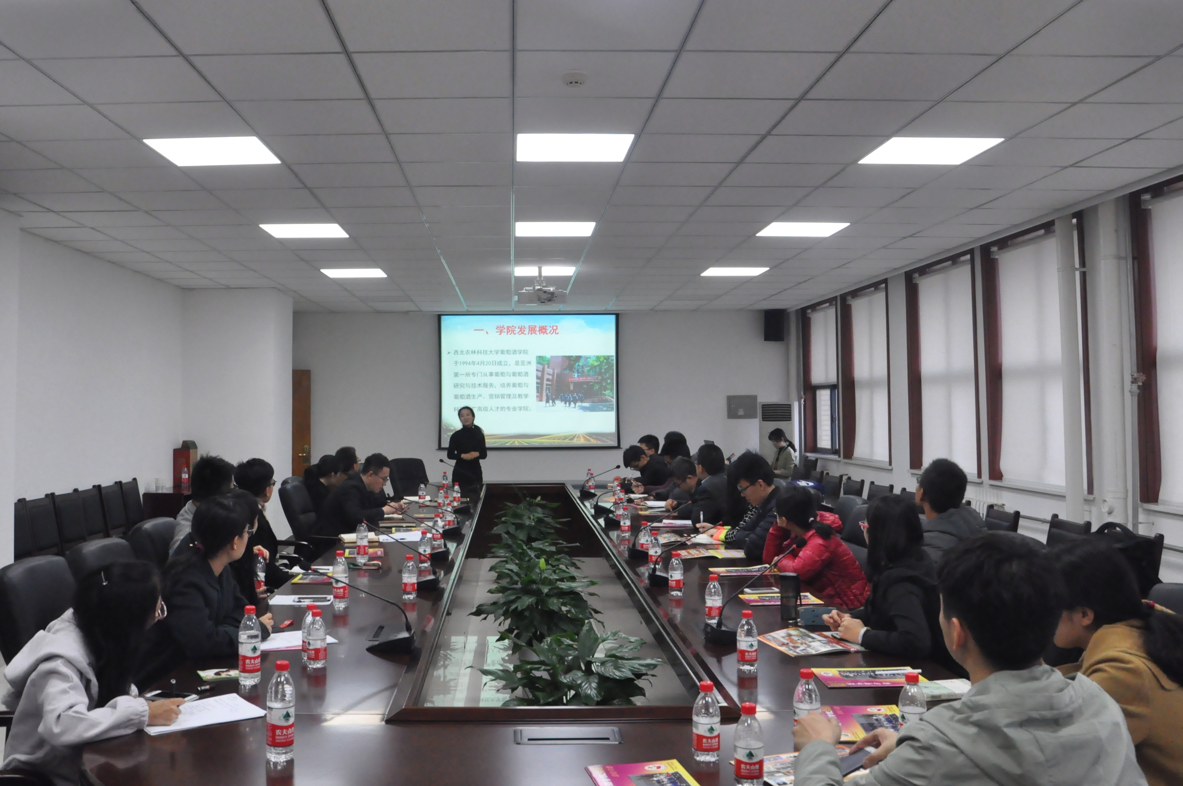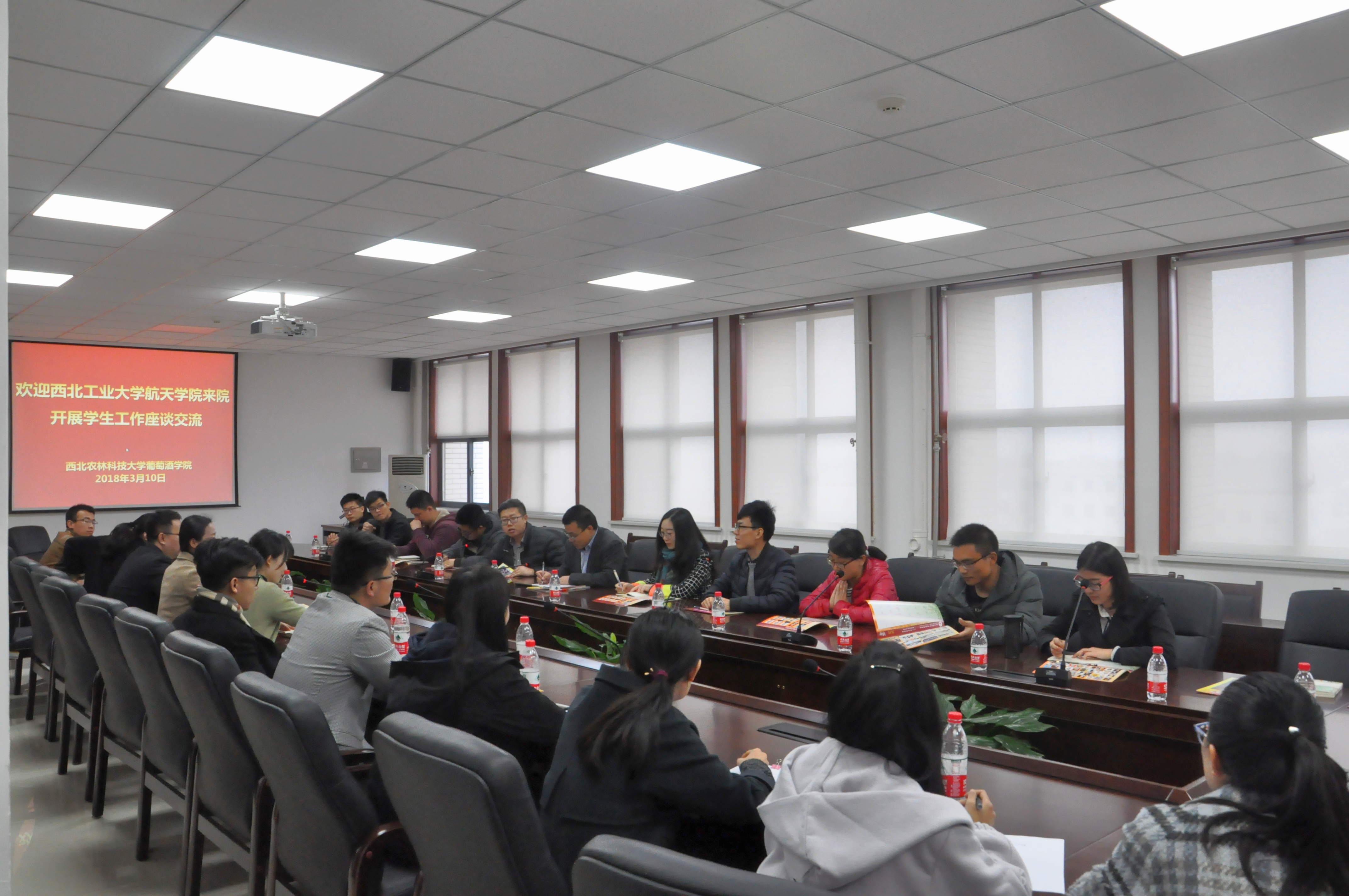 党委副书记张永福的带领下,学院团委书记赵通科、研究生辅导员罗淑娟等老师及学院研究生会骨干成员等共计十五人,赴杨凌与西北农林科技大学葡萄酒学院进行学生工作经验交流。