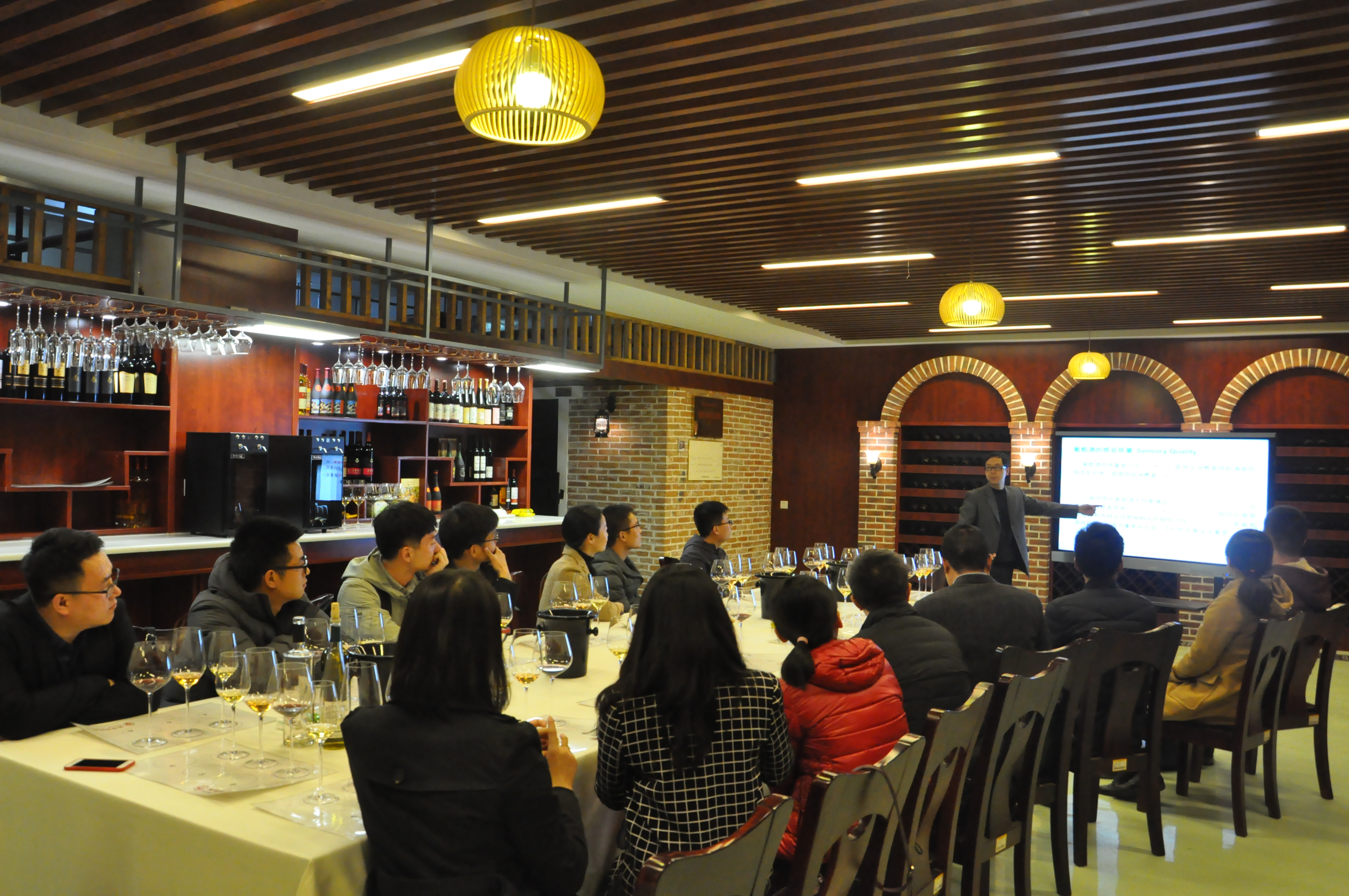 参访团,并组织大家参观了酒窖、酿造工艺实验室等葡萄酒学院的特色设施。葡萄酒学院的地下酒窖中,陶永胜教授以三款不同的葡萄酒为例,为大家讲解了葡萄酒的品鉴知识。参访团成员王宇感叹道,“没想到葡萄酒文化如此迷人,里面还有这么多的知识,学习到了很多!”