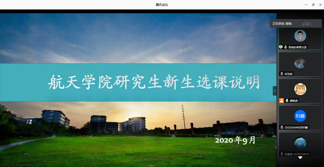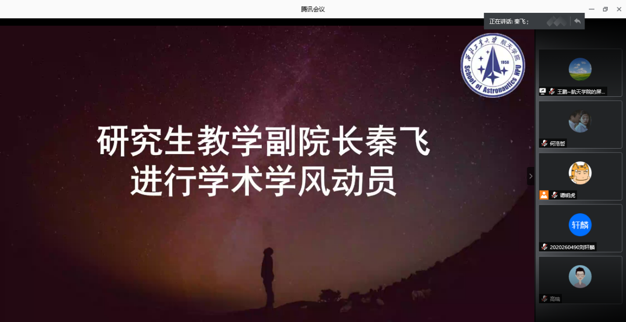 举行2020级研究生新生见面会。由于疫情防控要求,今年新生见面会改为线上进行。见面会上,学院领导与负责老师同2020级硕博新生分享航天精神,探讨交流如何在小黄书