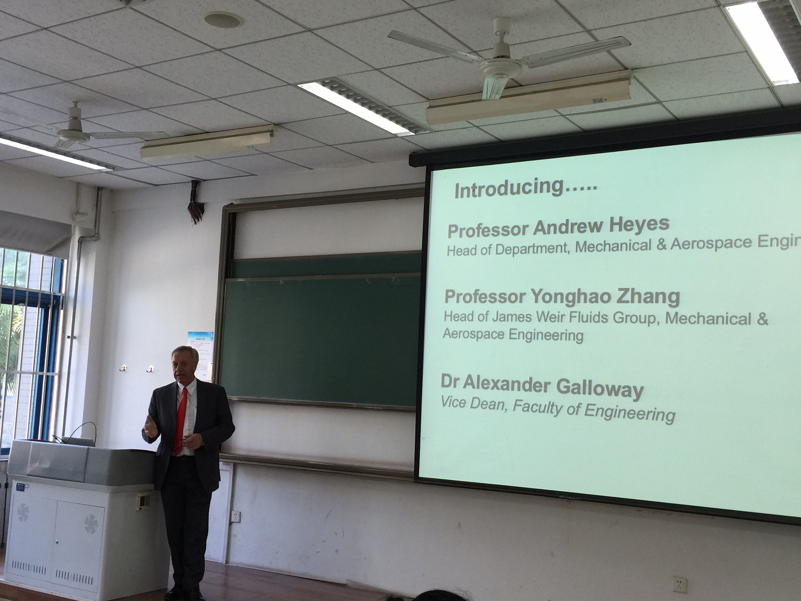 On 30th March vice president of Faulty of EngineeringAlexanderGalloway, head of Department Mechanical & Aerospace Engineering Andrew Heyes and professor Yonghao Zhang visited school of astronautics on behalf ofUniversity of Strathclyde, to meet with president ofschool of astronautics Tang Shuo, vice presidents Liu Peijin and Gong Chunlin on student exchange programs and other relevant issues.