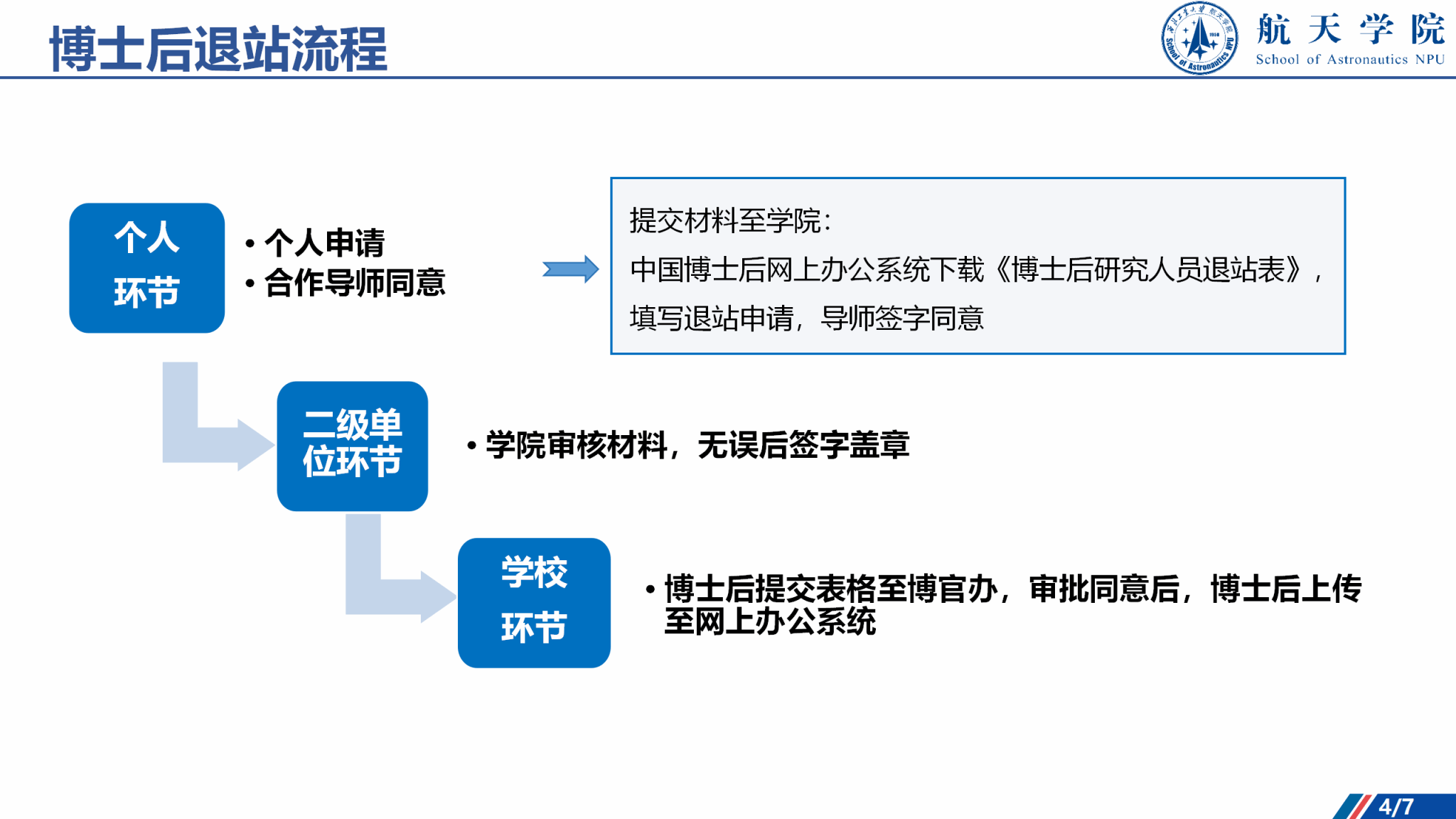 博士后聘期考核、退站、出站、离校手续办理流程及相关材料